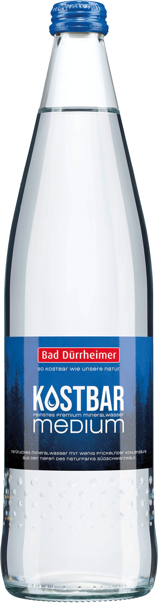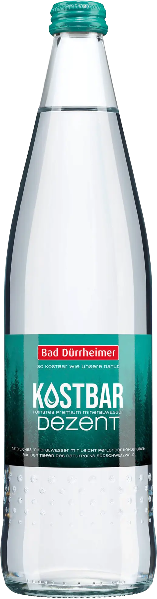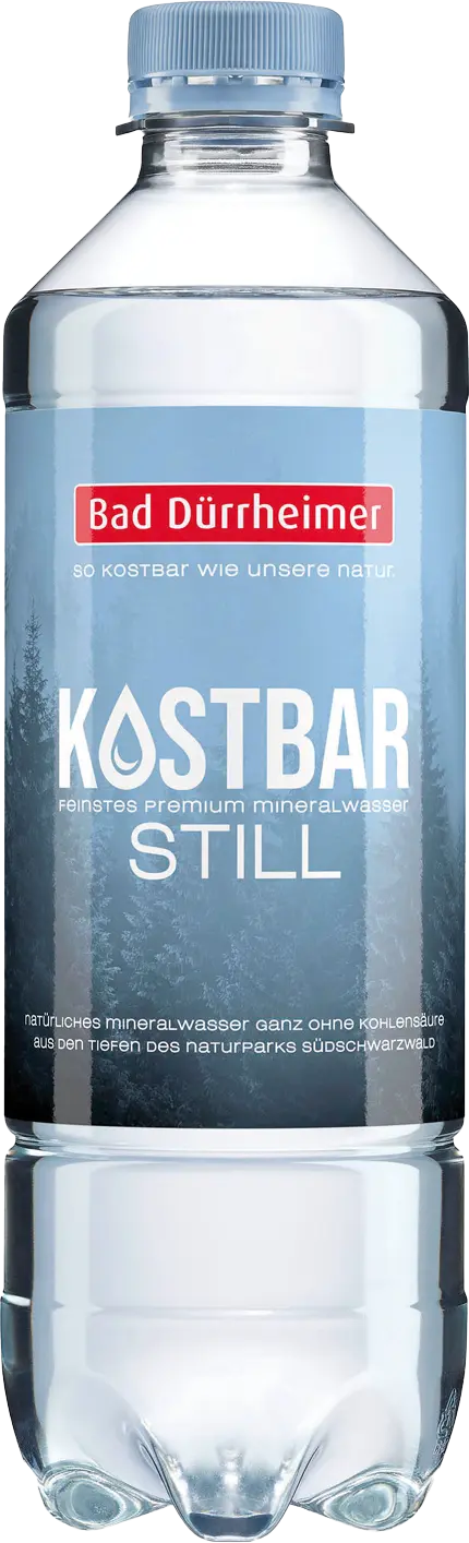 »Samtig weiches, kostbares Bio-Mineralwasser mit klarem Erscheinungsbild. Die angenehme Mineralisierung ist unaufdringlich und mild im Geschmack. Ein Hauch von hintergründiger Süße bildet eine interessante Note, die dieses Bio-Mineralwasser fast unverwechselbar macht. Seine elegante Klarheit macht Lust dieses Bio-Mineralwasser zu einem köstlichen Essen oder edlem Glas Wein zu genießen. Einfach perfekt. Bad Dürrheimer Kostbar ist das quellfrische Premium-Mineralwasser aus den geschützten Tiefen des Naturparks Südschwarzwald. Natürlich ohne Kohlensäure, ein wahrer Genuss.«